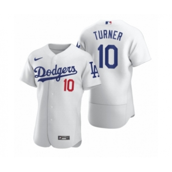 >Men's Los Angeles Dodgers #10 Justin Turner Nike White 2020 Authentic Jersey