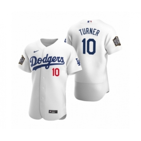 Men's Los Angeles Dodgers #10 Justin Turner Nike White 2020 World Series Authentic Jersey