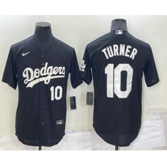 >Men's Los Angeles Dodgers #10 Justin Turner Number Black Turn Back The Clock Stitched Cool Base Jersey