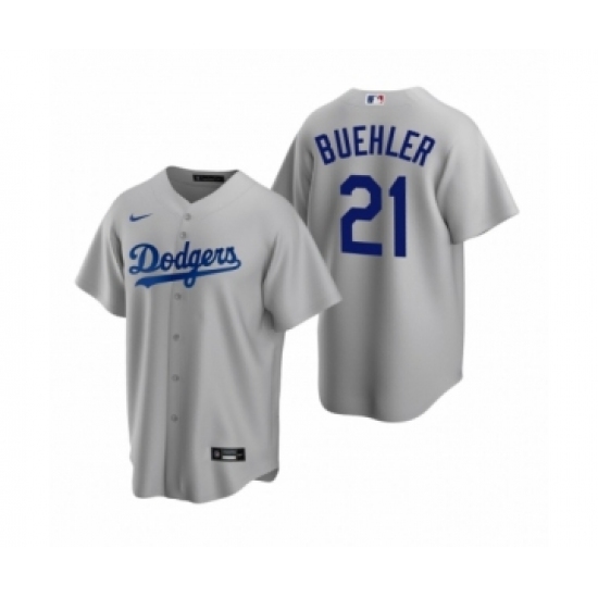 >Men's Los Angeles Dodgers #21 Walker Buehler Nike Gray Replica Alternate Jersey
