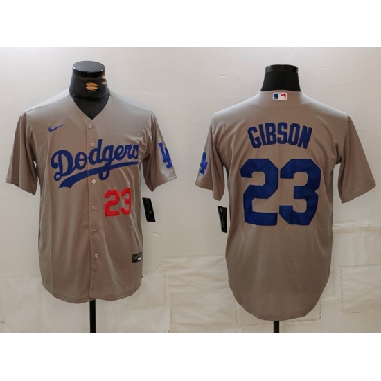 Men's Los Angeles Dodgers #23 Kirk Gibson Number Grey With los Cool Base Stitched Jersey