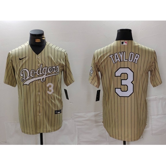 Men's Los Angeles Dodgers #3 Chris Taylor Cream Pinstripe Stitched Cool Base Nike Jersey