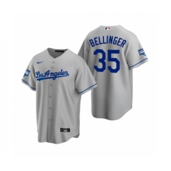 Men's Los Angeles Dodgers #35 Cody Bellinger Gray 2020 World Series Champions Road Replica Jersey