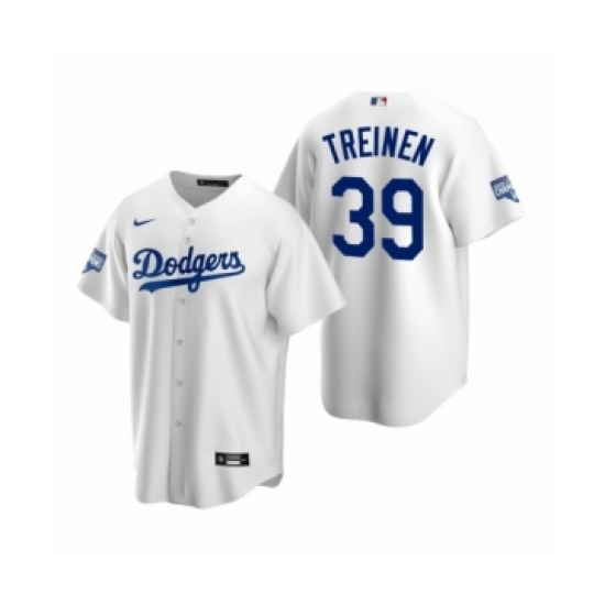>Men's Los Angeles Dodgers #39 Blake Treinen White 2020 World Series Champions Replica Jersey