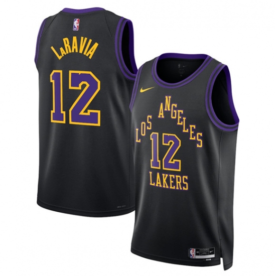 Men's Los Angeles Lakers #12 Jake LaRavia Black 2025-26 City Edition Stitched Basketball Jersey