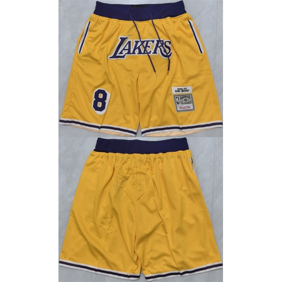 Men's Los Angeles Lakers #8 Kobe Bryant Yellow 2025 Shorts (Run Small)