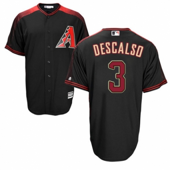 >Men's Majestic Arizona Diamondbacks #3 Daniel Descalso Replica Black/Brick Alternate Home Cool Base MLB Jersey