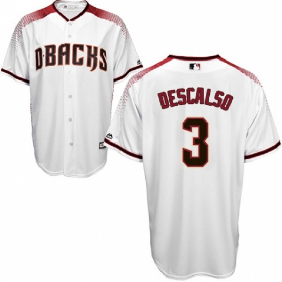 >Men's Majestic Arizona Diamondbacks #3 Daniel Descalso Replica White Home Cool Base MLB Jersey