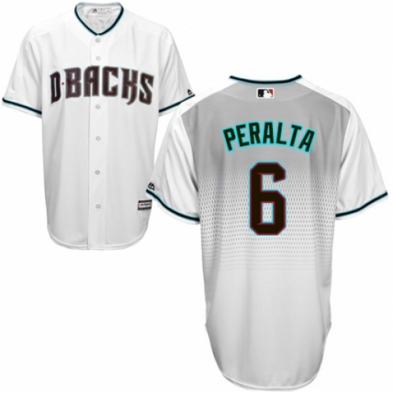 >Men's Majestic Arizona Diamondbacks #6 David Peralta Replica White/Capri Cool Base MLB Jersey