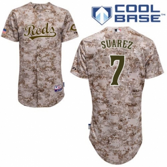 Men's Majestic Cincinnati Reds #7 Eugenio Suarez Replica Camo Alternate Cool Base MLB Jersey