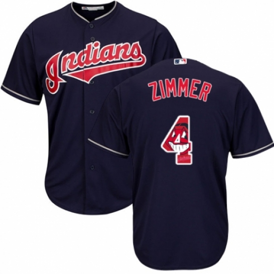 Men's Majestic Cleveland Indians #4 Bradley Zimmer Authentic Navy Blue Team Logo Fashion Cool Base MLB Jersey