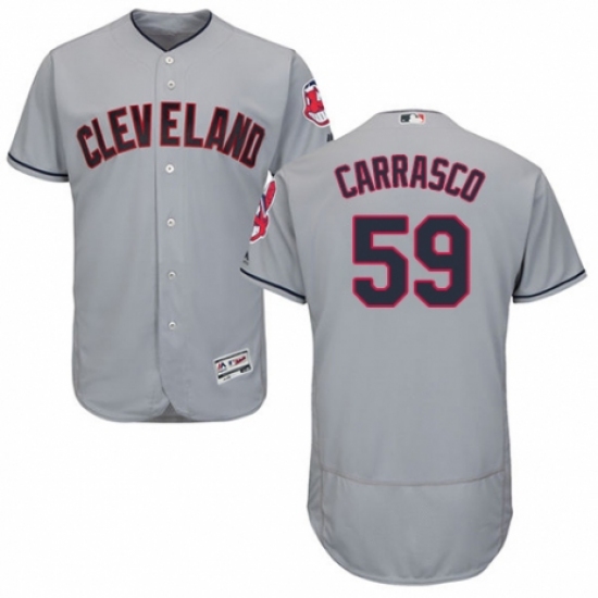 Men's Majestic Cleveland Indians #59 Carlos Carrasco Grey Road Flex Base Authentic Collection MLB Jersey