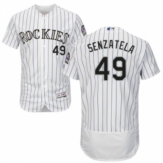 >Men's Majestic Colorado Rockies #49 Antonio Senzatela White Home Flex Base Authentic Collection MLB Jersey