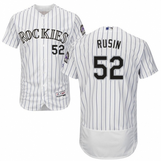 >Men's Majestic Colorado Rockies #52 Chris Rusin White Home Flex Base Authentic Collection MLB Jersey