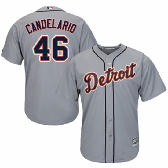 Men's Majestic Detroit Tigers #46 Jeimer Candelario Replica Grey Road Cool Base MLB Jersey