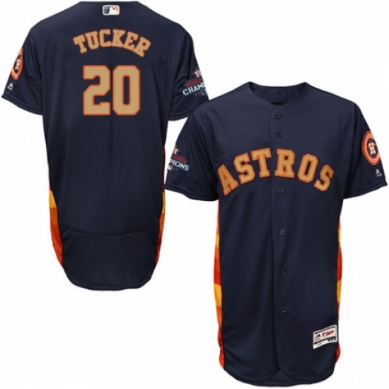 >Men's Majestic Houston Astros #20 Preston Tucker Navy Blue Alternate 2018 Gold Program Flex Base Authentic Collection MLB Jersey
