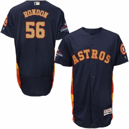 >Men's Majestic Houston Astros #56 Hector Rondon Navy Blue Alternate 2018 Gold Program Flex Base Authentic Collection MLB Jersey