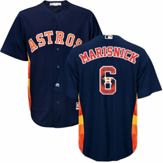 Men's Majestic Houston Astros #6 Jake Marisnick Authentic Navy Blue Team Logo Fashion Cool Base MLB Jersey
