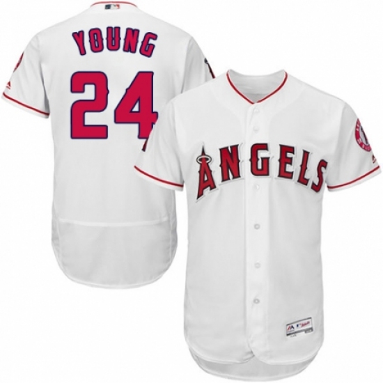 >Men's Majestic Los Angeles Angels of Anaheim #24 Chris Young White Home Flex Base Authentic Collection MLB Jersey
