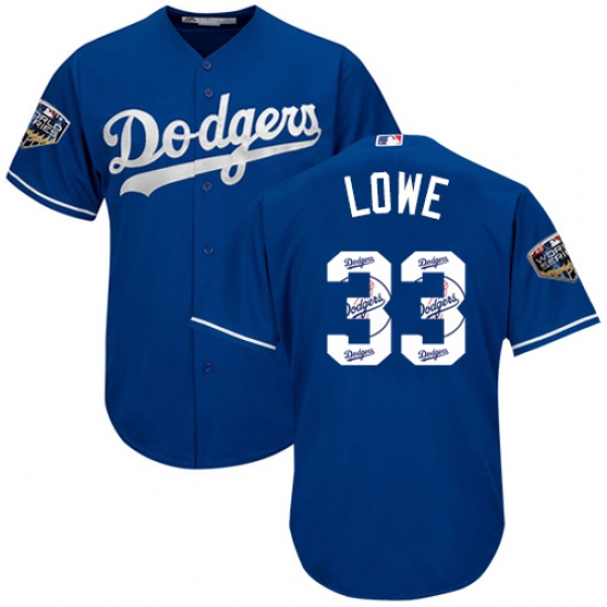 Men's Majestic Los Angeles Dodgers #33 Mark Lowe Authentic Royal Blue Team Logo Fashion Cool Base 2018 World Series MLB Jersey