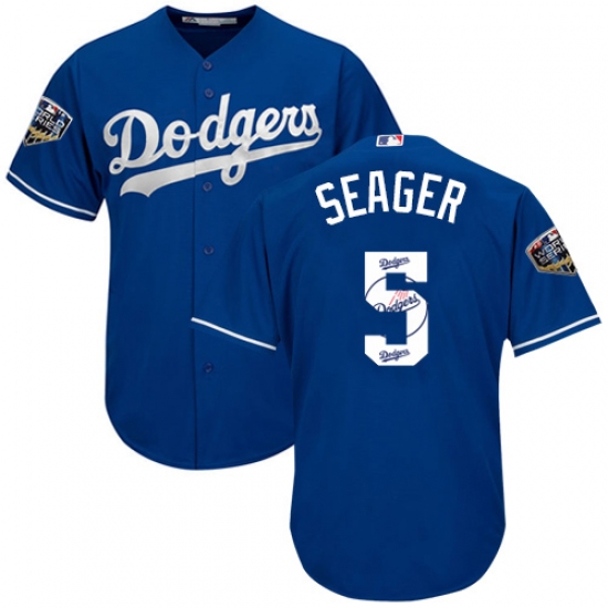Men's Majestic Los Angeles Dodgers #5 Corey Seager Authentic Royal Blue Team Logo Fashion Cool Base 2018 World Series MLB Jersey