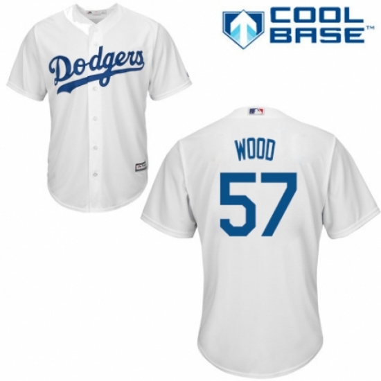 Men's Majestic Los Angeles Dodgers #57 Alex Wood Replica White Home Cool Base MLB Jersey