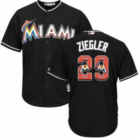 Men's Majestic Miami Marlins #29 Brad Ziegler Authentic Black Team Logo Fashion Cool Base MLB Jersey