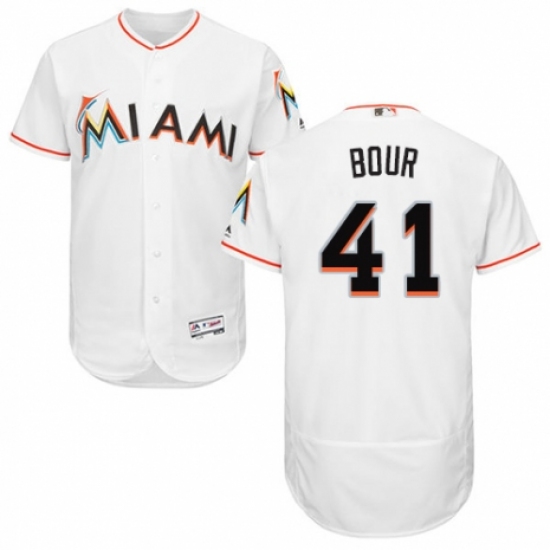 >Men's Majestic Miami Marlins #41 Justin Bour White Home Flex Base Authentic Collection MLB Jersey