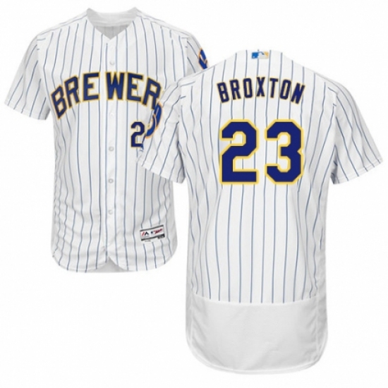 Men's Majestic Milwaukee Brewers #23 Keon Broxton White Home Flex Base Authentic Collection MLB Jersey