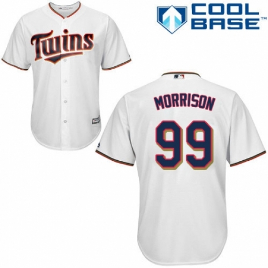 >Men's Majestic Minnesota Twins #99 Logan Morrison Replica White Home Cool Base MLB Jersey