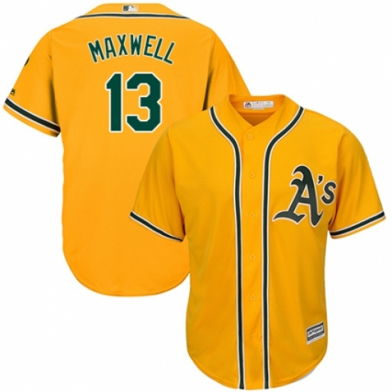 >Men's Majestic Oakland Athletics #13 Bruce Maxwell Replica Gold Alternate 2 Cool Base MLB Jersey