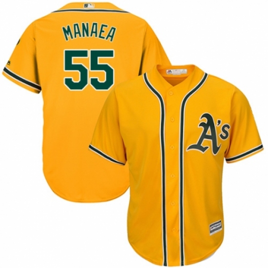 Men's Majestic Oakland Athletics #55 Sean Manaea Replica Gold Alternate 2 Cool Base MLB Jersey