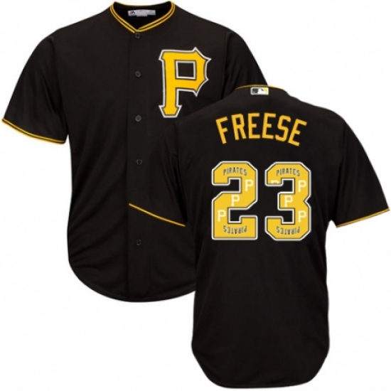 >Men's Majestic Pittsburgh Pirates #23 David Freese Authentic Black Team Logo Fashion Cool Base MLB Jersey