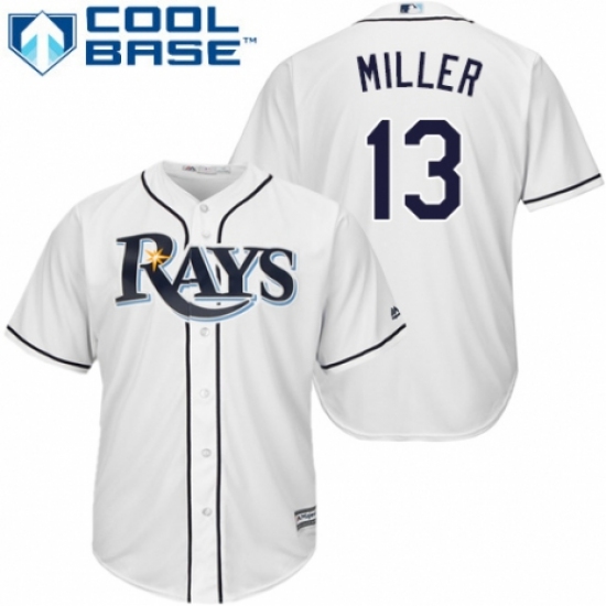 >Men's Majestic Tampa Bay Rays #13 Brad Miller Replica White Home Cool Base MLB Jersey