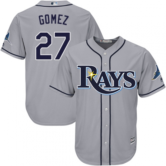 Home>MLB>Tampa Bay Rays>Carlos Gomez>Men's Majestic Tampa Bay Rays #27 Carlos Gomez Replica Grey Road Cool Base MLB Jersey