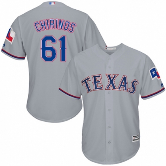 Men's Majestic Texas Rangers #61 Robinson Chirinos Replica Grey Road Cool Base MLB Jersey