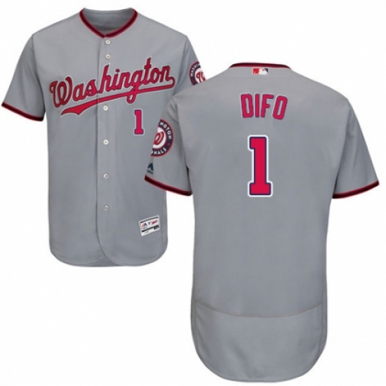 >Men's Majestic Washington Nationals #1 Wilmer Difo Grey Road Flex Base Authentic Collection MLB Jersey