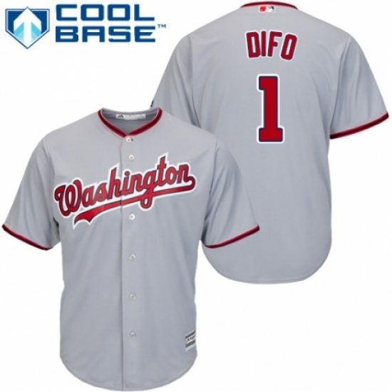 Men's Majestic Washington Nationals #1 Wilmer Difo Replica Grey Road Cool Base MLB Jersey