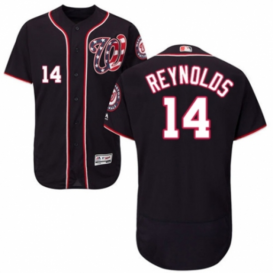 Men's Majestic Washington Nationals #14 Mark Reynolds Navy Blue Alternate Flex Base Authentic Collection MLB Jersey