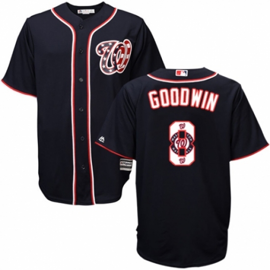 Men's Majestic Washington Nationals #8 Brian Goodwin Navy Blue Alternate Flex Base Authentic Collection MLB Jersey