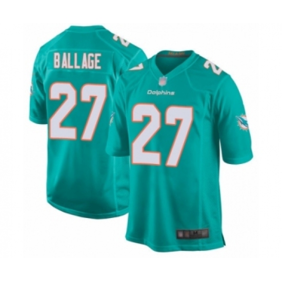>Men's Miami Dolphins #27 Kalen Ballage Game Aqua Green Team Color Football Jersey
