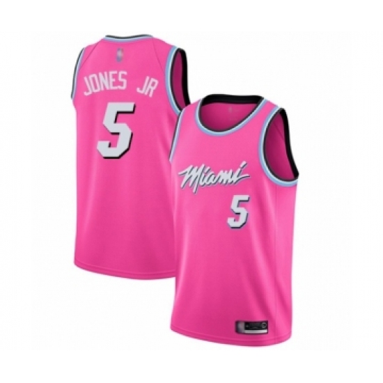 >Men's Miami Heat #5 Derrick Jones Jr Pink Swingman Jersey - Earned Edition