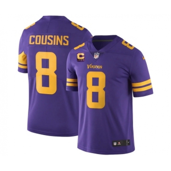 Men's Minnesota Vikings 2022 #8 Kirk Cousins Purple With 4-Star C Patch Rush Limited Stitched NFL Jersey