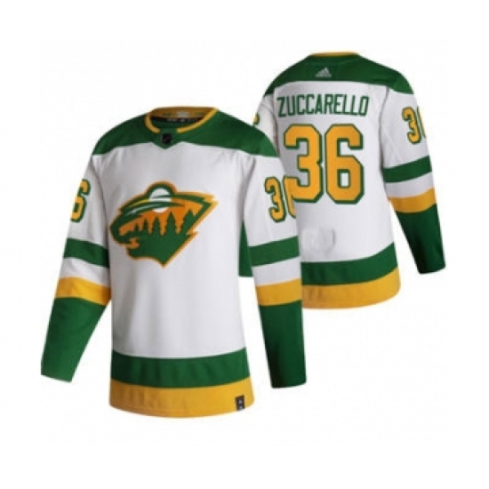 >Men's Minnesota Wild #36 Mats Zuccarello White 2020-21 Reverse Retro Alternate Hockey Jersey