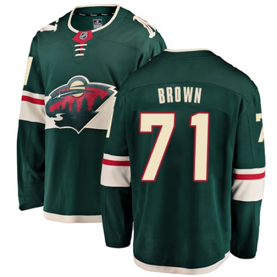 >Men's Minnesota Wild #71 J T Brown Authentic Green Home Fanatics Branded Breakaway NHL Jersey