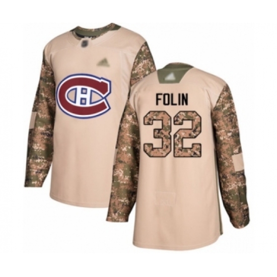 >Men's Montreal Canadiens #32 Christian Folin Authentic Camo Veterans Day Practice Hockey Jersey