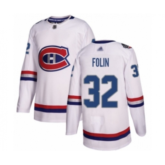 >Men's Montreal Canadiens #32 Christian Folin Authentic White 2017 100 Classic Hockey Jersey