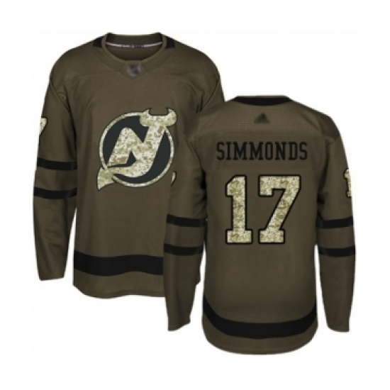 >Men's New Jersey Devils #17 Wayne Simmonds Authentic Green Salute to Service Hockey Jersey
