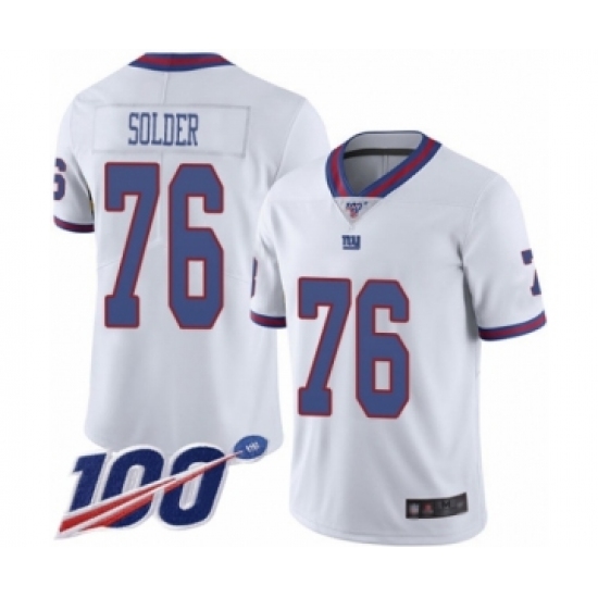>Men's New York Giants #76 Nate Solder Limited White Rush Vapor Untouchable 100th Season Football Jersey