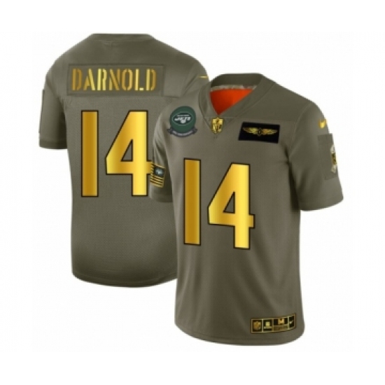 >Men's New York Jets #14 Sam Darnold Limited Olive Gold 2019 Salute to Service Football Jersey